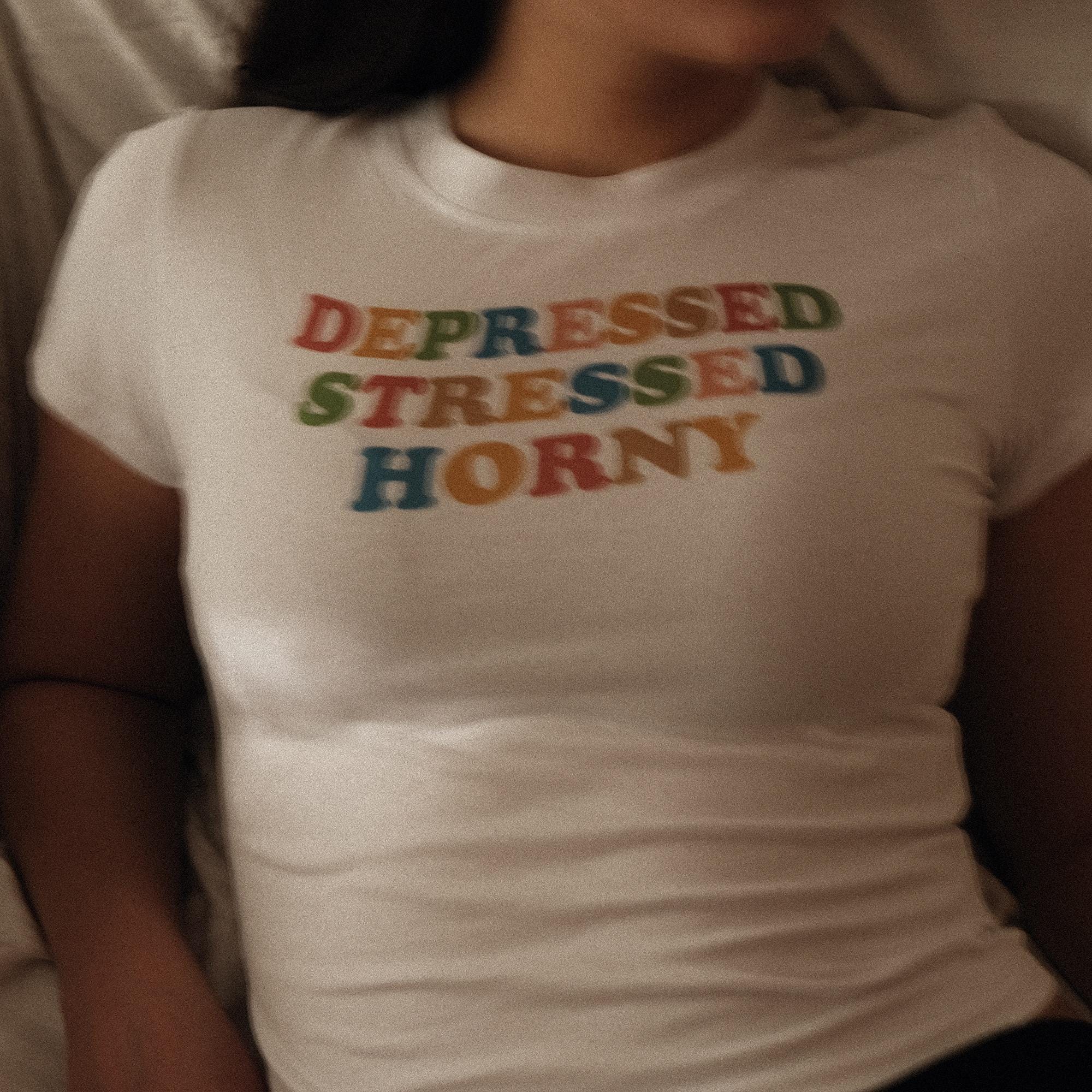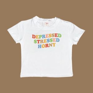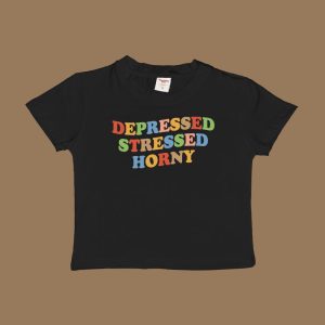 Depressed Stressed Horny Baby Tee Crop Top Shirt