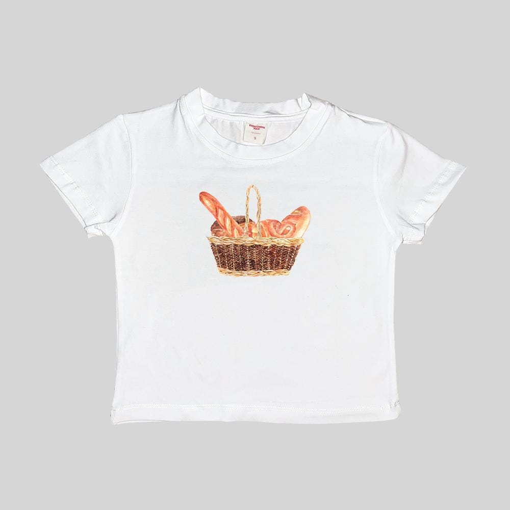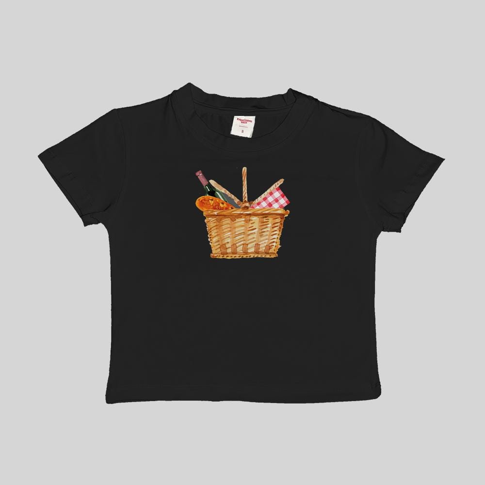 Bread Picnic Basquette Basket Baby Tee Crop Top Shirt Graphic