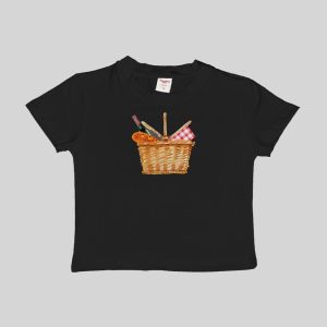 Wine Picnic Basquette Basket Baby Tee Crop Top Shirt Graphic