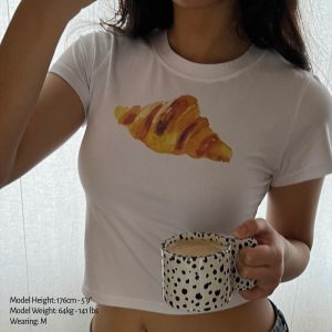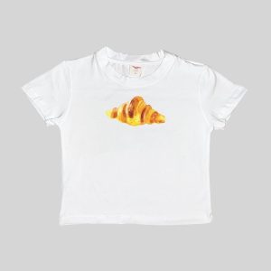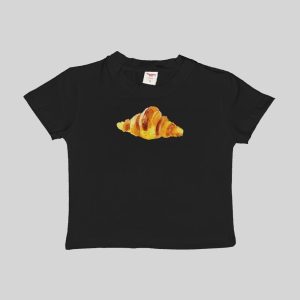 Croissant Baby Tee Crop Top Shirt Graphic Watercolor