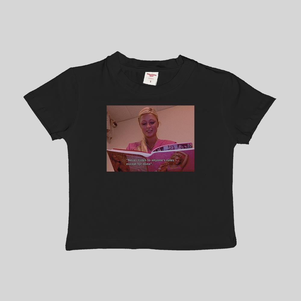 My Rules Paris Hilton Baby Tee Crop Top Shirt Retro Graphic