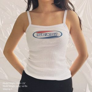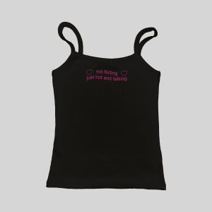 Depressed Stressed Horny Ribbed Spaghetti Strap Crop Top