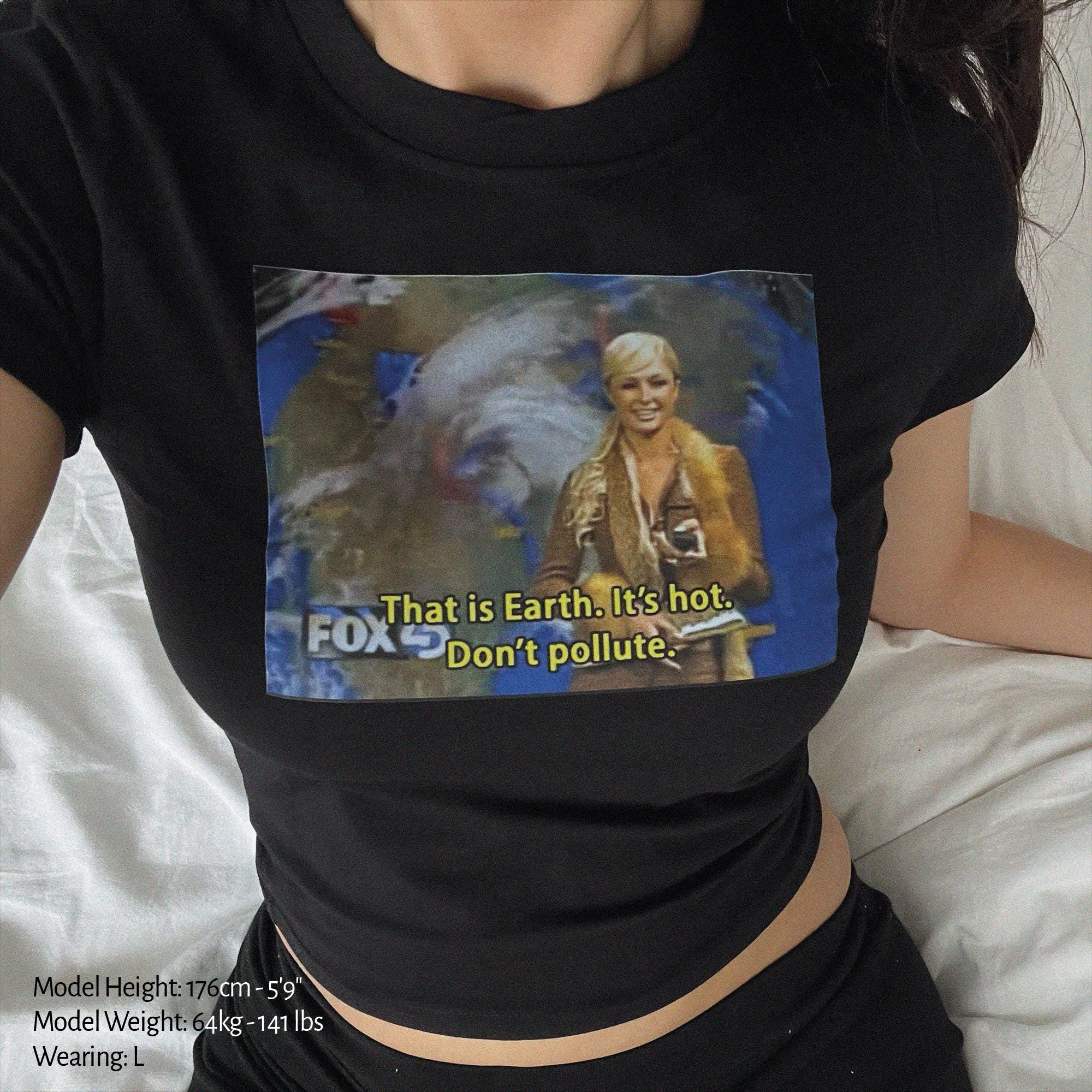 That’s Earth It’s Hot Don’t Pollute Baby Tee Crop Top Shirt Paris Hilton