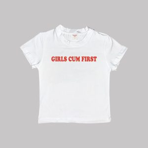 Girls Cum First Baby Tee Crop Top Shirt