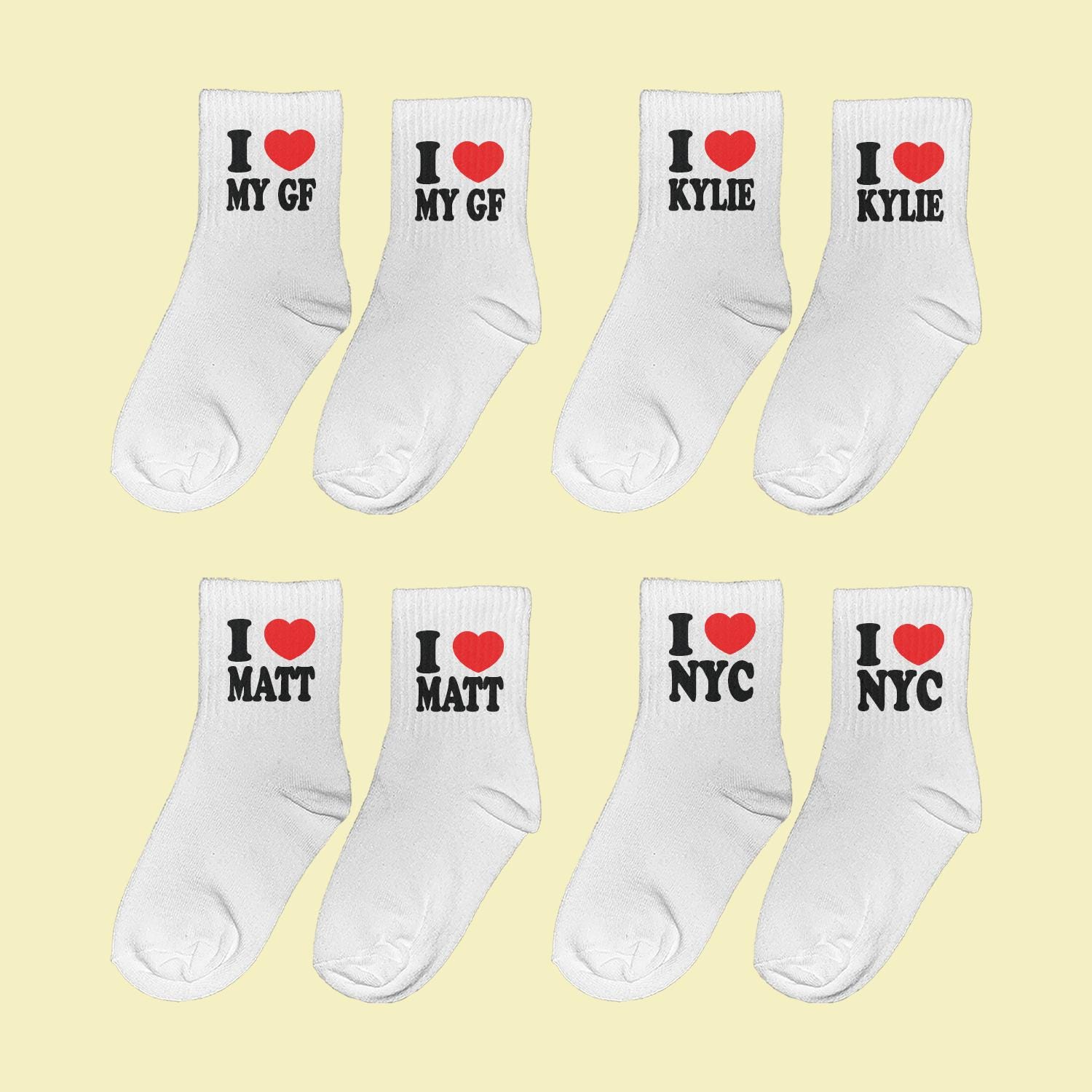 I Love Custom Word Socks (3 Pairs Pack)