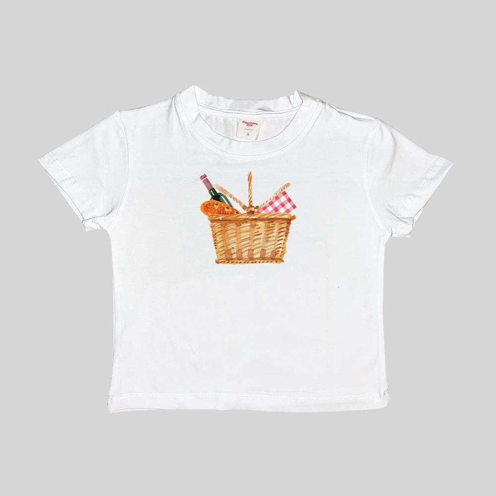 Bread Picnic Basquette Basket Baby Tee Crop Top Shirt Graphic