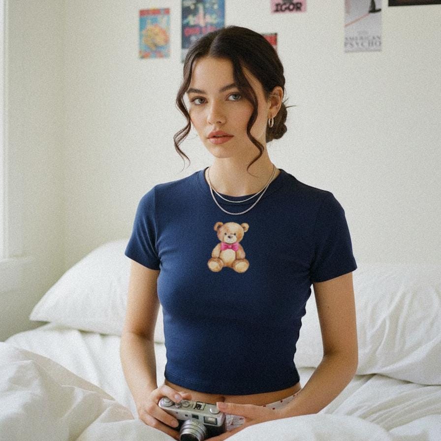 Bear Watercolor Baby Tee Crop Top Shirt