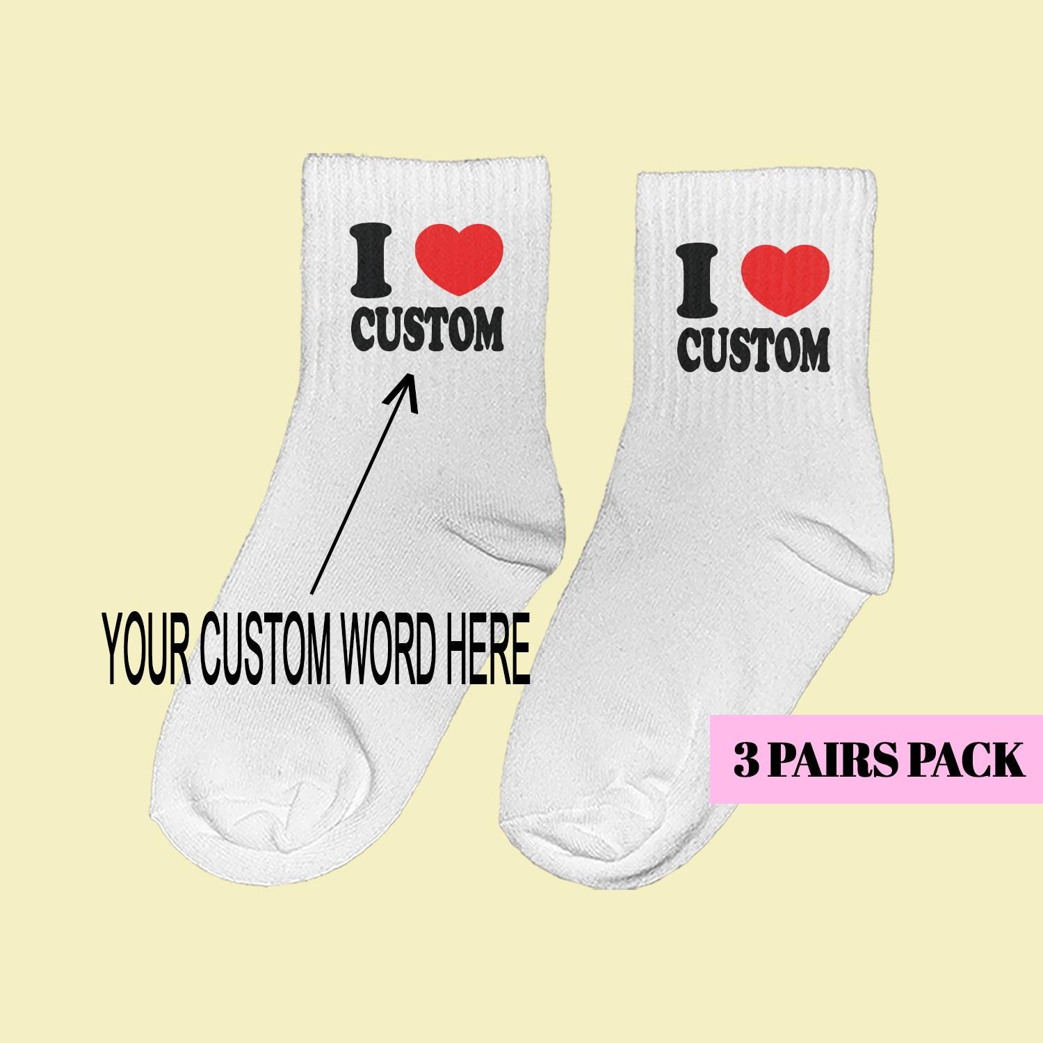 I Love Custom Word Socks (3 Pairs Pack)